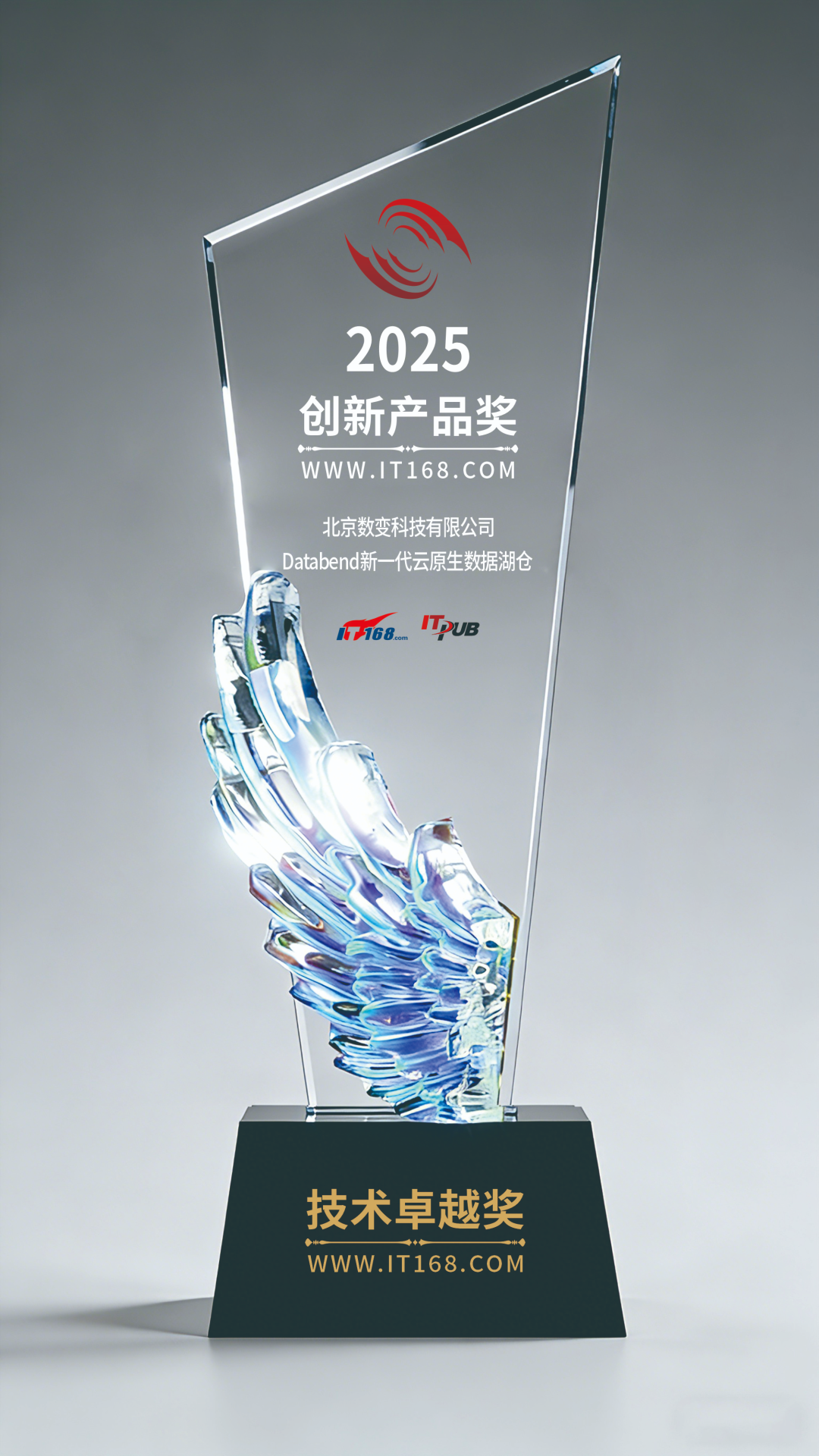 2025年12月15日 —— 在IT168主办的2025技术卓越奖评选中,新一代云原生数据湖仓 Databend 凭借其卓越的技术创新与实效,从众多候选者中脱颖而出,成功荣获“创新产品奖”。这一权威奖项的获得,标志着 Databend 在解决企业级数据处理核心挑战、推动自主技术体系发展方面的价值,获得了产业界的高度认可。