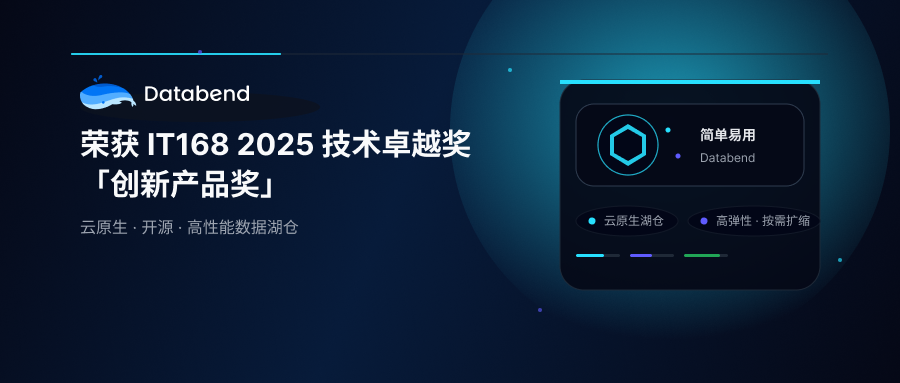 2025年12月15日 —— 在IT168主办的2025技术卓越奖评选中,新一代云原生数据湖仓 Databend 凭借其卓越的技术创新与实效,从众多候选者中脱颖而出,成功荣获“创新产品奖”。这一权威奖项的获得,标志着 Databend 在解决企业级数据处理核心挑战、推动自主技术体系发展方面的价值,获得了产业界的高度认可。